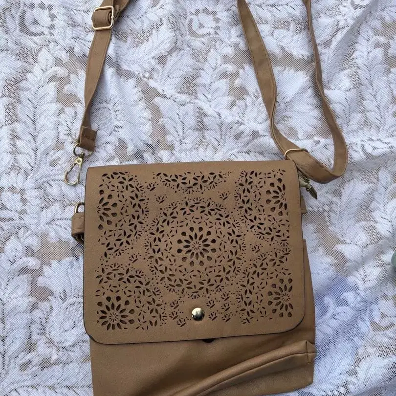 레이저 컷 디자인의 베이지 숄더백, 조정 가능한 스트랩으로 사용하기 편리합니다. - 색상: 베이지 - 디자인: 레이저 컷 디자인 - 내부 포켓: 2개의 메인 컴파트먼트 - 잠금 방식: 스냅 버튼식 - 스트랩: 조정 가능한 숄더 스트랩 방문해 주셔서 감사합니다.