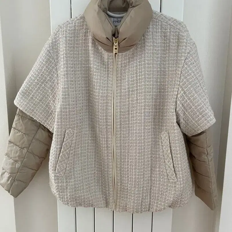 - 소재: 트위드풍 원단과 다운