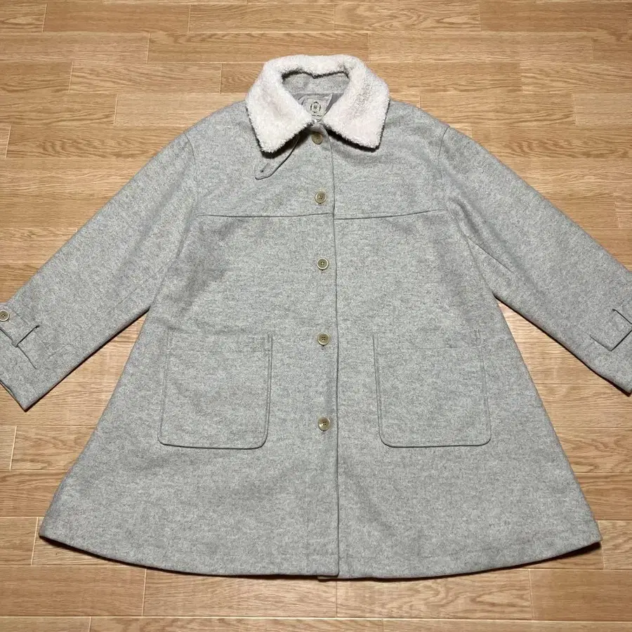 사만사 모스모스 그레이 베이지 보아 옷깃 미들 기장 코트 F