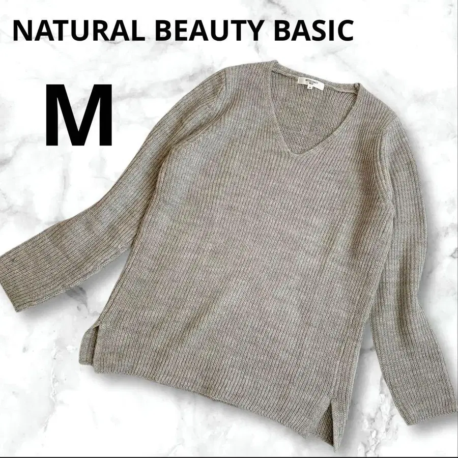 NATURAL BEAUTY BASIC V넥 니트 그레이 출퇴근 오피스 M