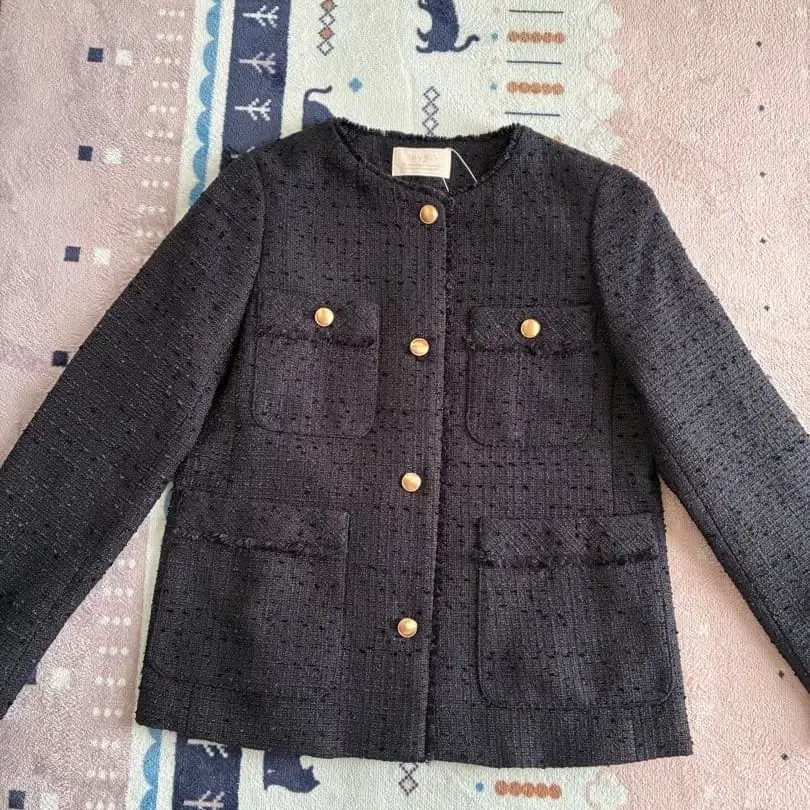 [ 새상품급 ] 펠리시모 트위드풍 노카라 자켓 골드 버튼 블랙 고급