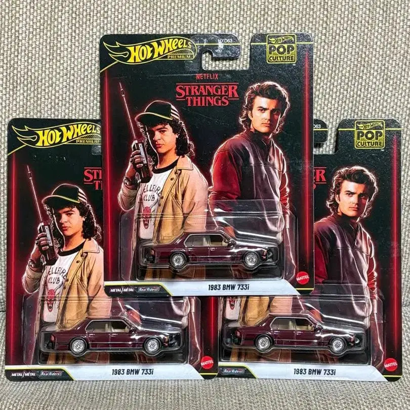 1983 BMW 733i 미니카 3개 세트, Stranger Things 시리즈 특별판. - 모델명: 1983 BMW 733i - 시리즈: Stranger Things - 브랜드: Hot Wheels - 소재: 메탈 - 특징: Real Riders - 수량: 3개 세트 방문해 주셔서 감사합니다. 종류 - 프리미엄 카 스케일 - 1/64
