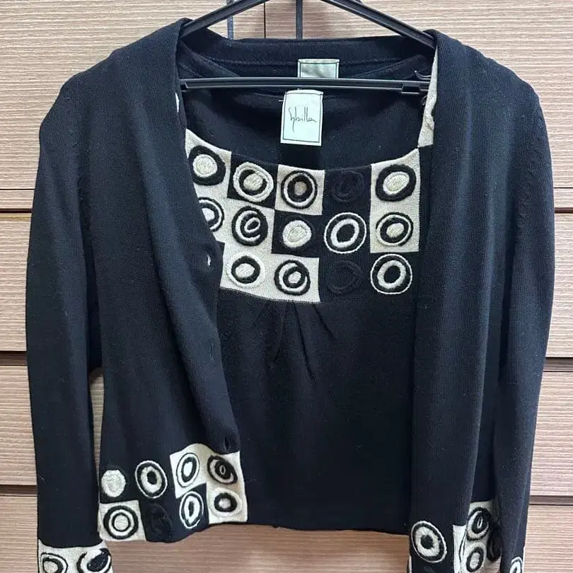 Sybilla의 자수가 들어간 블랙 긴팔 가디건, 슬리브리스 세트입니다. 거의 미사용이라 흠집, 얼룩 등 없습니다. 좋아요, 댓글 기다리고 있겠습니다. - 색상: 블랙 - 디자인: 원형 무늬 자수 - 스타일: 버튼 달린 가디건 - 소매 길이: 긴팔