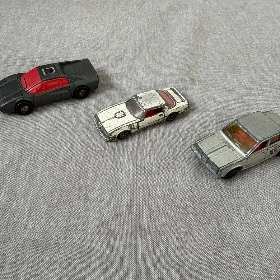 1978년제 토미카와 프랑스제 미니카, 변형 타입의 미니카 세트입니다. 연식이 오래되어 페인트 벗겨짐이 눈에 띄지만, 타이어와 문은 문제없이 움직입니다.
