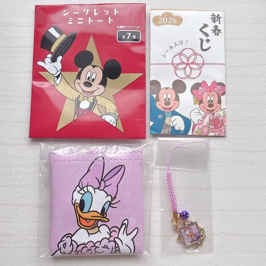 디즈니 스토어 카라비너 포함 시크릿 미니 토트와 신춘 복권 스트랩 데이지 2세트입니다. ※ 씰은 포함되지 않습니다. 미사용 새상품입니다.