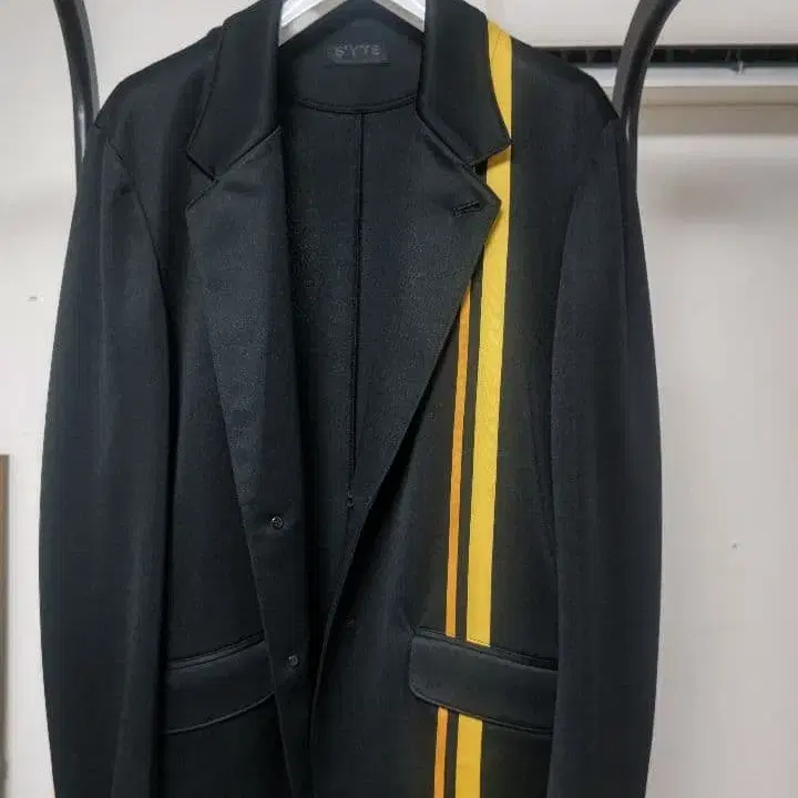 스트라이프 디자인의 테일러드 자켓, 앞면에 2개의 포켓 부착. - 색상: 블랙/옐로우 컬러 - 디자인: 스트라이프 - 포켓: 앞면에 2개의 포켓 - 스타일: 테일러드 자켓 - 자수: 왼쪽 소매에 디자인 자수 사이즈 3 방문해 주셔서 감사합니다.