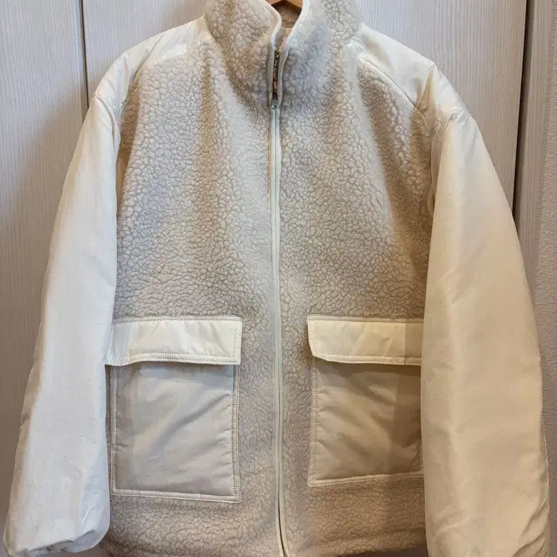 아이보리 색상의 보아, 소매, 어깨 부분은 나일론 소재로 절개되었습니다.