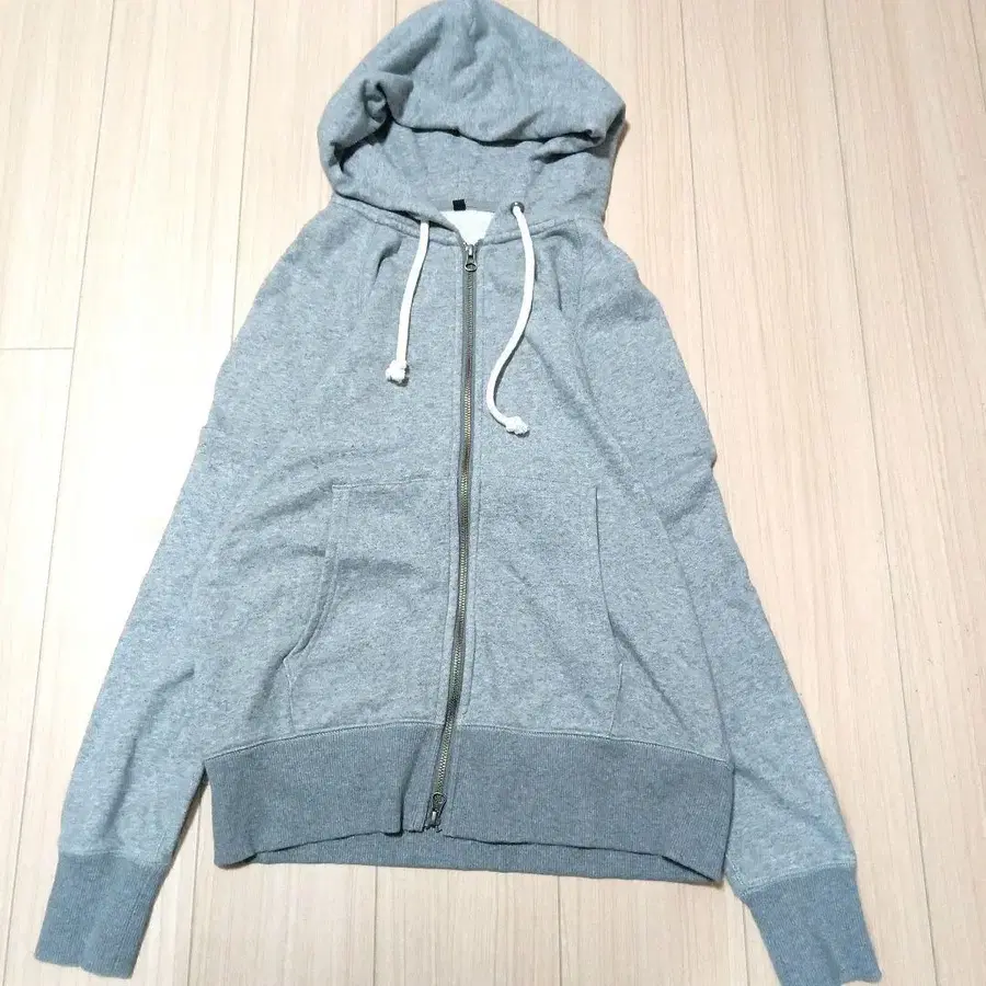 그레이 후드 부착 집업 후드티 LL