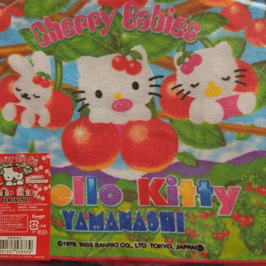 컬러풀한 배경에 체리와 헬로키티 디자인의 타월. - 디자인: Hello Kitty with cherries, colorful background - 제조국: 일본제 - 소재: 폴리에스테르 100% - 시리즈명: Cherry Babies - 판매 지역: 일본 한정판 방문해 주셔서 감사합니다.