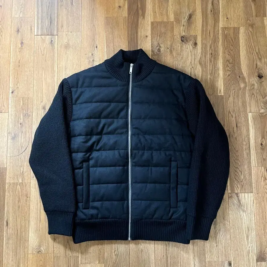 컬러 블랙 1시즌 착용 몸통 부분에는 광택감이 있고 매끄러운 촉감의 플란넬 소재, 소매와 카라의 니트 부분에는 엑스트라 파인 메리노울 실을 사용했습니다. 충전솜에는 기능성 충전솜 플리마켓 [ PlimaLoft ] 를 채용.