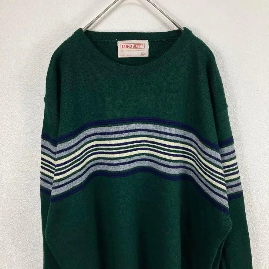 미국산 80년대 lord jeff 아크릴 보더 니트 스웨터 빈티지 그린
