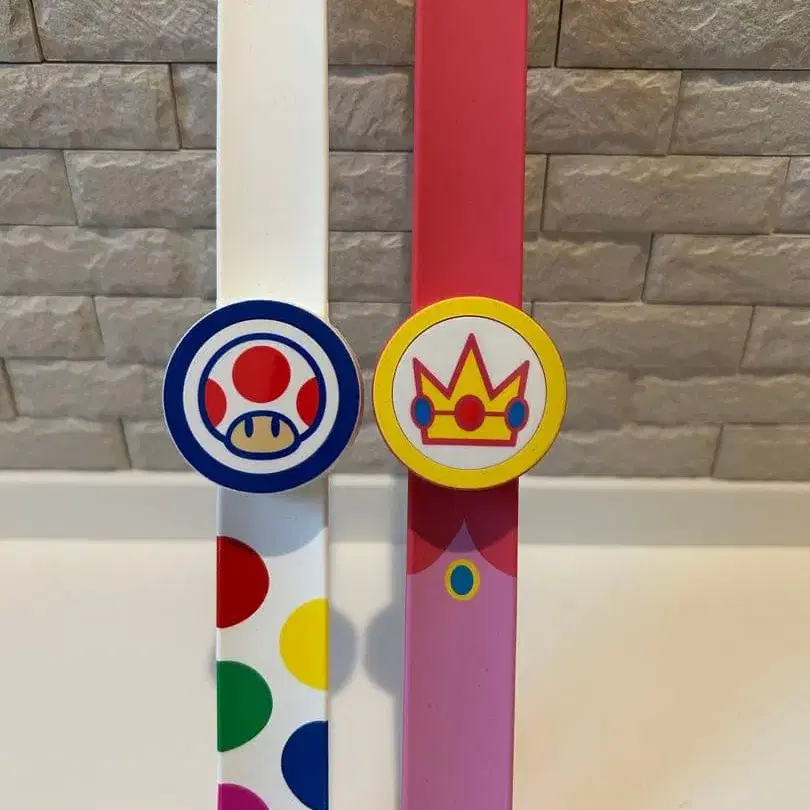 마리오의 토드 디자인의 컬러풀한 파워업 밴드.