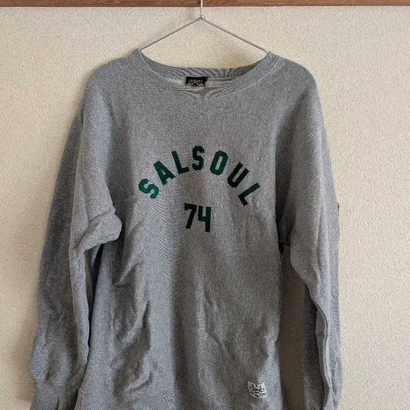 SALSoul 74 프린트가 특징인 그레이 스웨트 셔츠. 옛날 BBP 사이트에서 구매했습니다. - 브랜드: BBP - 색상: 그레이 - 디자인: SALSoul 74 프린트 - 디자인: DANCE YOUR ASS OFF TO SALSOUL 프린트 - 소재: 코튼 혼방 - 사이즈: L 178cm, 65kg인 제가 입었을 때 저스트 정도입니다. 잘 부탁드립니다.