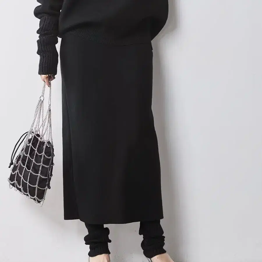 스테디셀러인 레깅스와 니트 스커트를 도킹하여 허리 부분이 부해 보이지 않고 깔끔하게 연출할 수 있습니다.