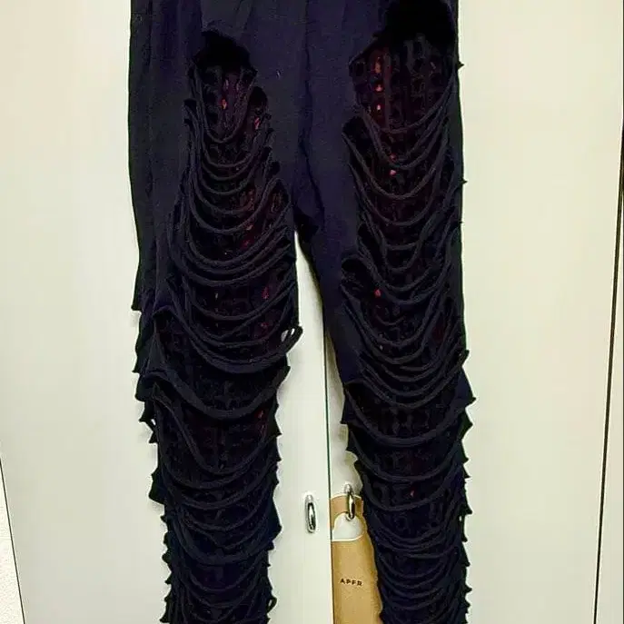 전체에 베풀어진 파괴 가공과 메쉬 구조가 특징이며, 안쪽의 빨간색이 비치는 디자인입니다.