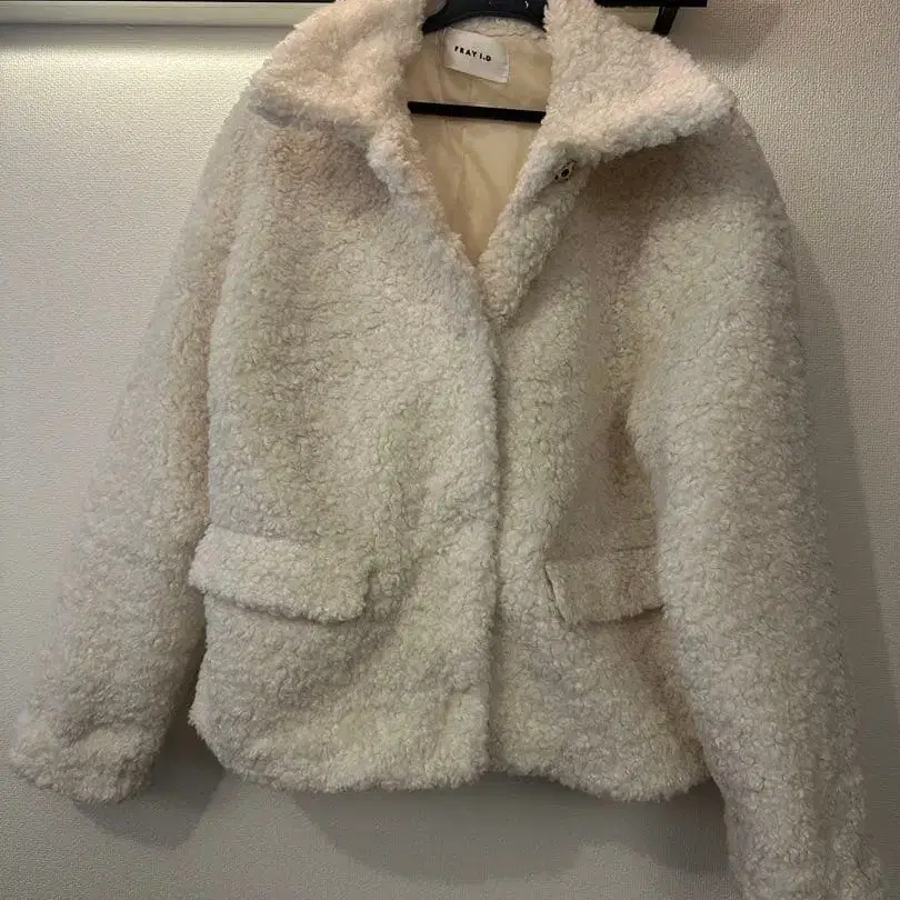부드러운 보아 소재의 화이트 자켓, 스냅 버튼이 있으며 안쪽은 나일론 소재입니다. - 색상: 화이트 - 디자인: 보아 자켓 - 버튼 종류: 스냅 버튼 - 안쪽 소재: 나일론 - 브랜드: FRAY I.D 방문해 주셔서 감사합니다. 미사용 새상품입니다. 구매 후, 뭔가 다르다고 생각해서 판매합니다. 사이즈 - FREE SIZE 색상 - 화이트 계열 얼룩, 찢김, 냄새 등 - 없음