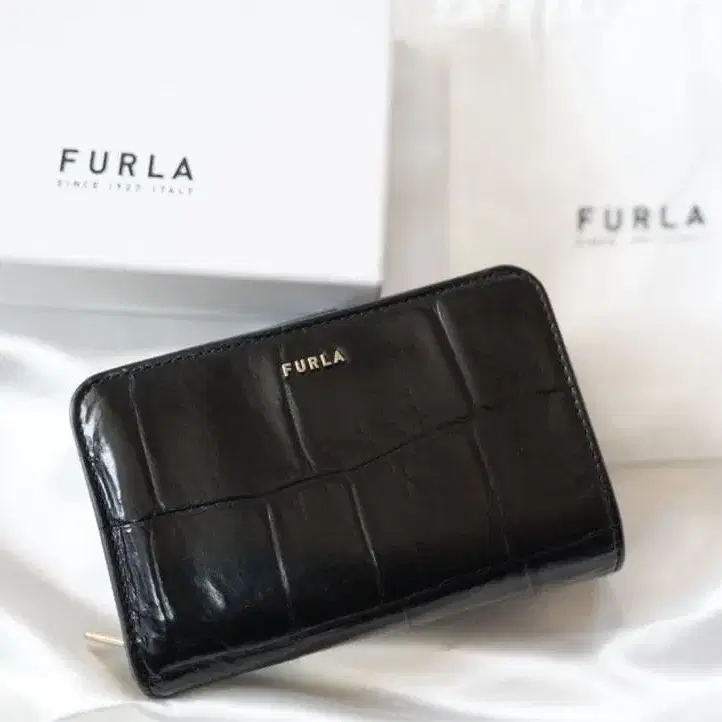 악어 엠보싱 블랙 가죽 접이식 지갑, FURLA의 스타일리시한 디자인. - 브랜드: FURLA - 색상: 블랙 - 소재: 가죽 - 디자인: 악어 엠보싱 - 타입: 접이식 지갑 - 부속품: 상자, 수납 가방 방문해 주셔서 감사합니다.