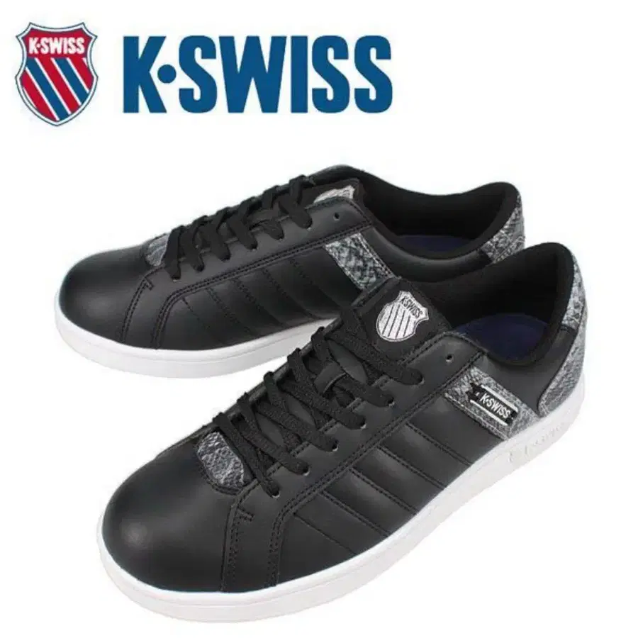 ■ 남성용 케이스위스 K SWISS KS 300 SNK II (36102051) ■ 사이즈: 27cm ■ 색상: 블랙/그레이 스네이크 K-SWISS 코트 스타일의 명작 LUNDAHL (란달)을 복각한 KS300 시리즈의 어퍼에, 스네이크 패턴을 배치한 디자인 어레인지 모델. 사이즈 - 27cm