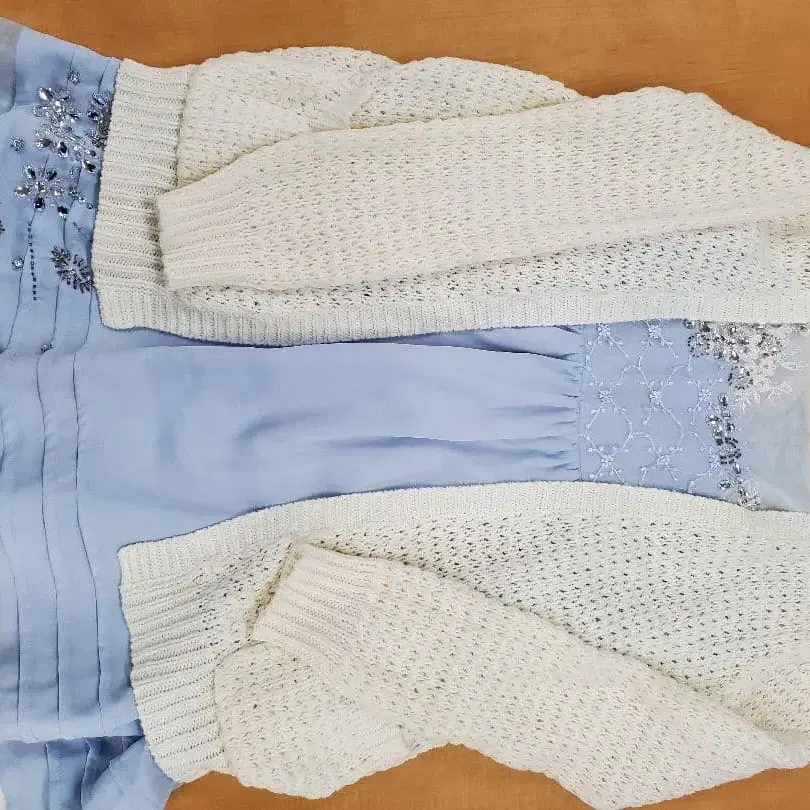제 키가 큰 편(166cm)이라 스커트가 짧게 느껴져서 미사용 상태입니다. 155cm 정도의 키라면 적당하게 착용 가능합니다. 가디건도 함께 드립니다.