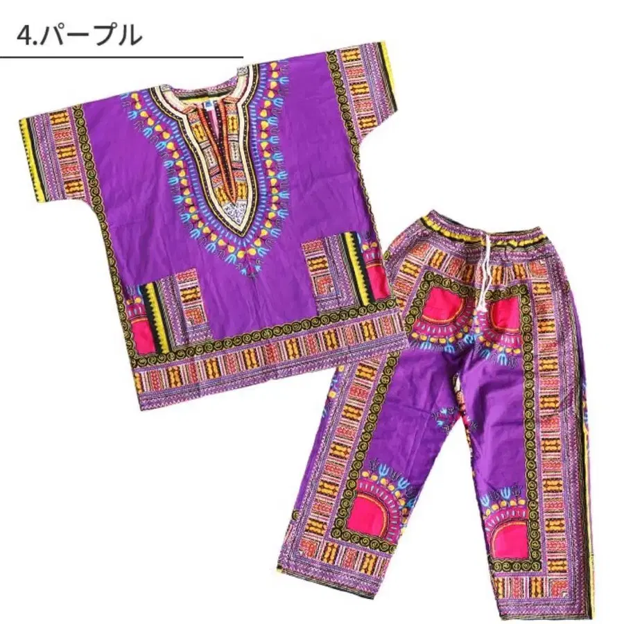 상의 팬츠 여성용 상하의 세트 2세트 티셔츠 반팔 셔츠 에스닉 다시키 민족 의상 아프리칸 남성용 남녀 공용 빅 사이즈 이벤트 댄스 의상 화려함 [ 봄 여름 가을 ] 색상: 퍼플 이벤트 때 한 번 착용한 것으로 상태는 좋다고 생각합니다. 브라운도 있습니다.