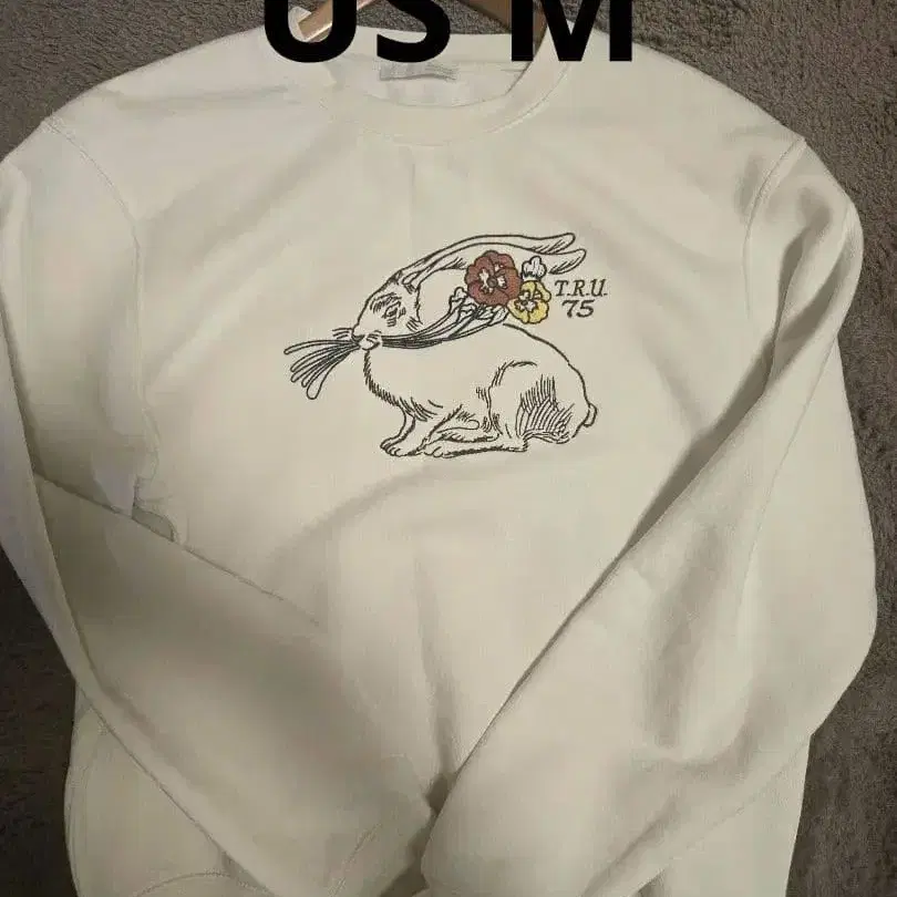토끼 자수가 들어간 화이트 맨투맨. 구매 후 4회 정도 착용했습니다. 상태는 사진으로 확인해주세요. - 색상: 화이트 - 디자인: 토끼 자수 - 연도: 75 - 브랜드명: TRU 방문해 주셔서 감사합니다.