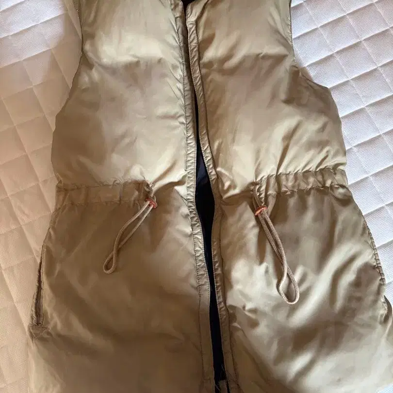 자동 번역되었어요. 원문보기베이지 색상의 다운 베스트입니다. 안쪽은 네이비 색상이며 허리 조절이 가능합니다.