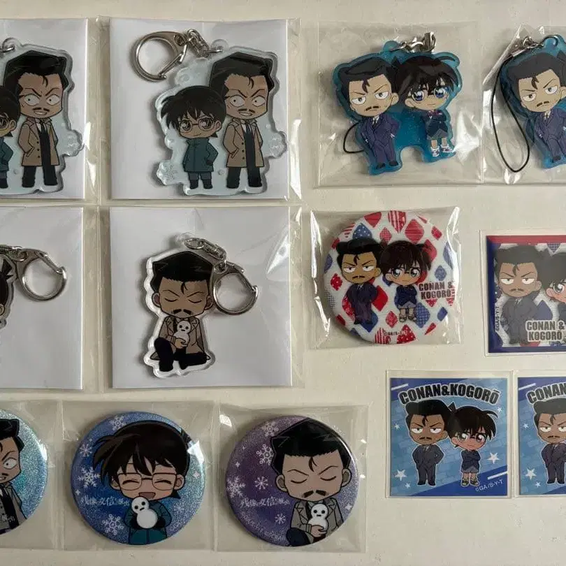 명탐정 코난 에도가와 코난 유명한(모리 코고로) 굿즈 세트입니다. 코난 탈출 캔뱃지 아크릴 키링 듀오 콜렉션