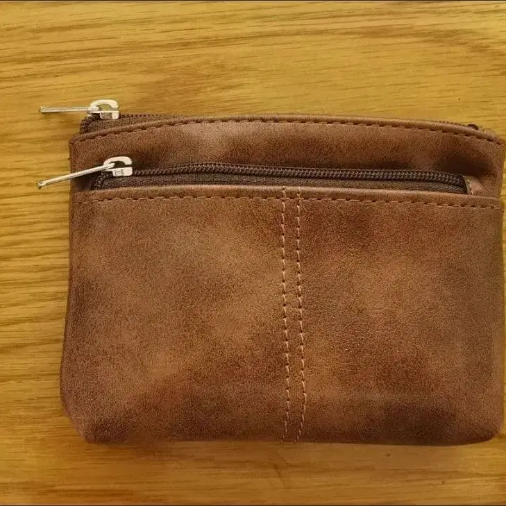 라운드 지갑 미니 도치기 새들 레더 총 손바느질 핸드메이드 (4)