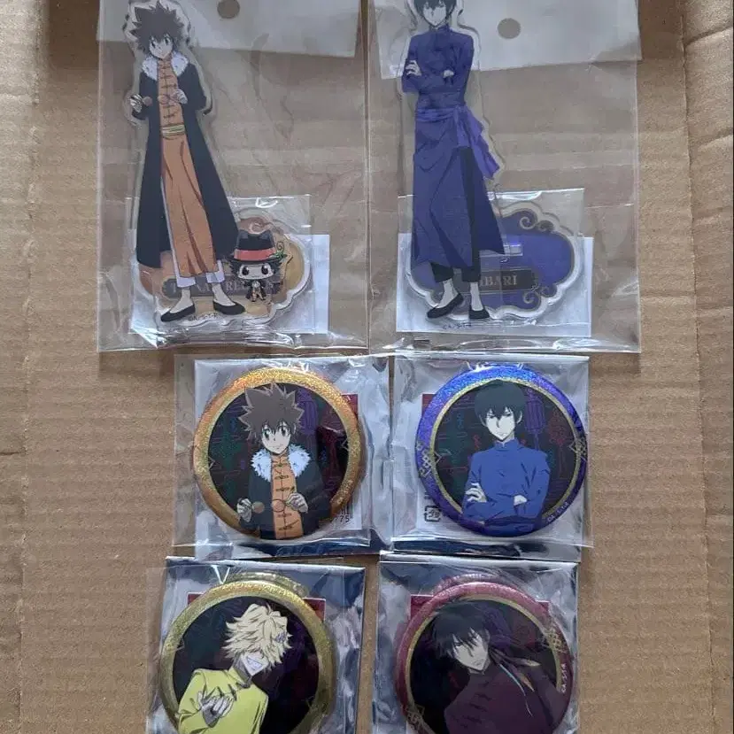 아크릴 스탠드와 스티커는 미개봉품입니다. 캔뱃지는 캐릭터 확인을 위해 개봉 완료했습니다. 사와다 츠나요시, 리본, 히바리 쿄야, 벨페골, XANXUSU (잔자스), 중화