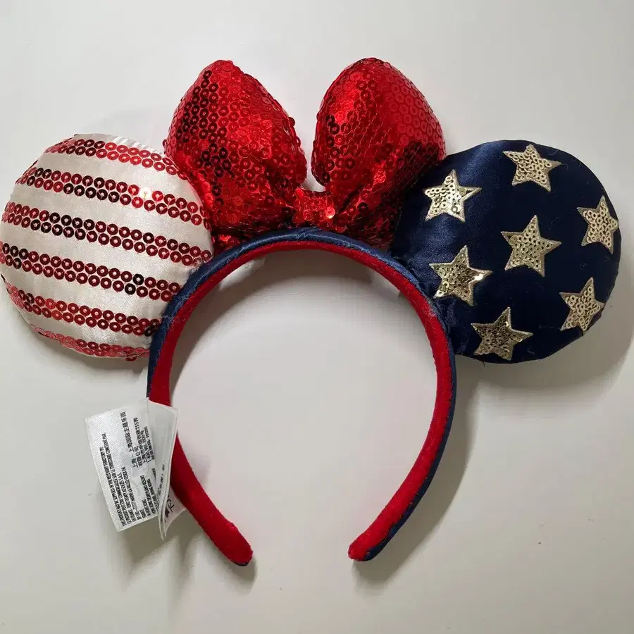 미국 국기를 테마로 한 스팽글 장식의 미키마우스 모양 머리띠.