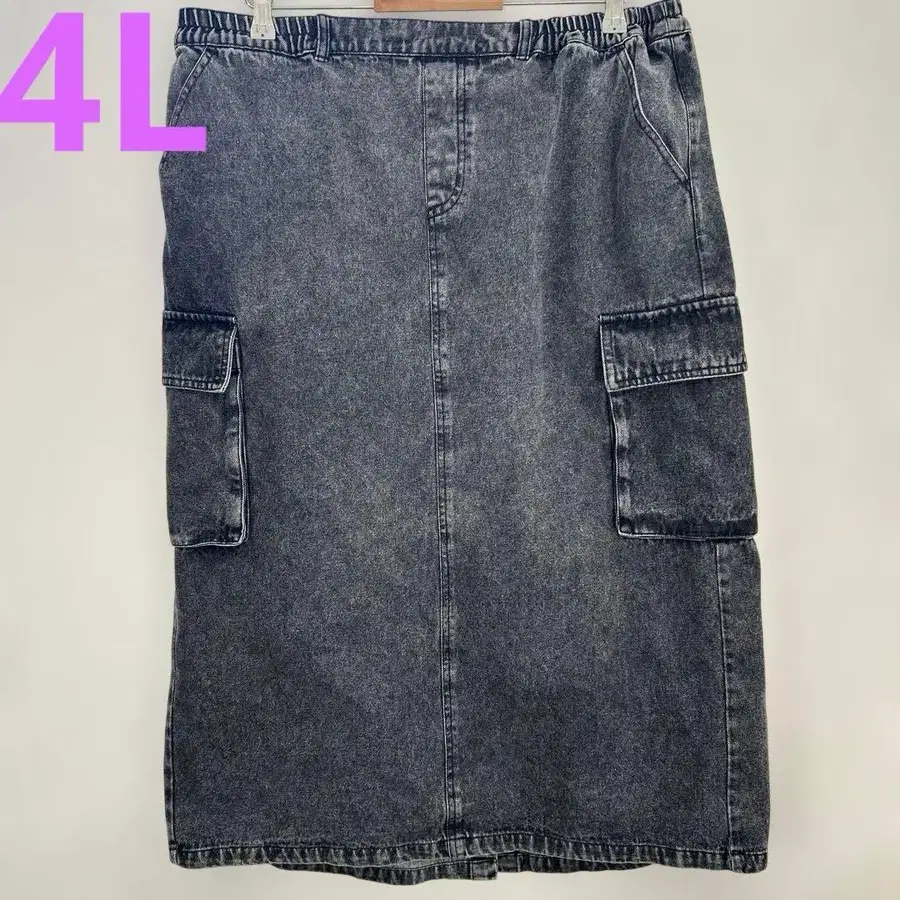 [빅 사이즈 4L] 새상품급 블랙 그레이 데님 카고 스커트 허리밴딩