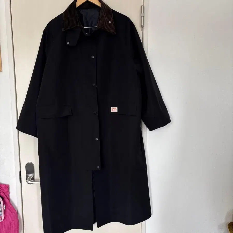 코듀로이 카라 부착 네이비 코트, 단추식 디자인으로 실용적입니다. 가슴 너비 65cm 소매 길이 55cm 총장 115cm 새상품! - 브랜드: JaVa - 색상: 블랙 - 소재: 코튼/폴리에스테르 - 디자인: 단추식, 코듀로이 옷깃 - 포켓: 앞면 포켓 있음 방문해 주셔서 감사합니다.