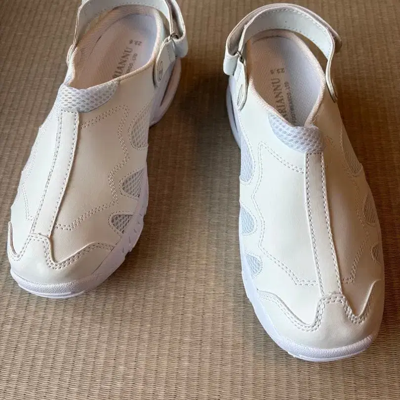메쉬와 합성 피혁의 콤비네이션으로 통기성이 좋으며, 간호사나 오피스에서의 사용에 최적인 백 스트랩이 달린 샌들입니다.