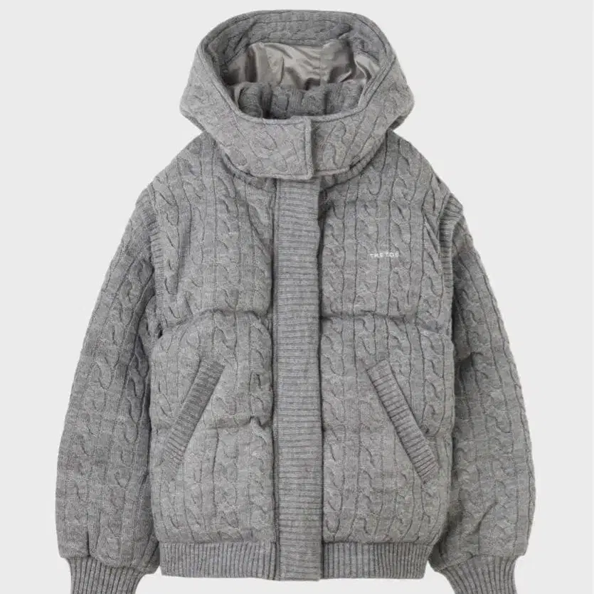 케이블 짜임이 특징인 니트 다운. 니트 소재에는 보온성이 높은 울 혼방 실을 채용했으며, 안에는 최고급 깃털을 듬뿍 사용했기 때문에 가벼우면서도 방한 기능이 확실합니다.