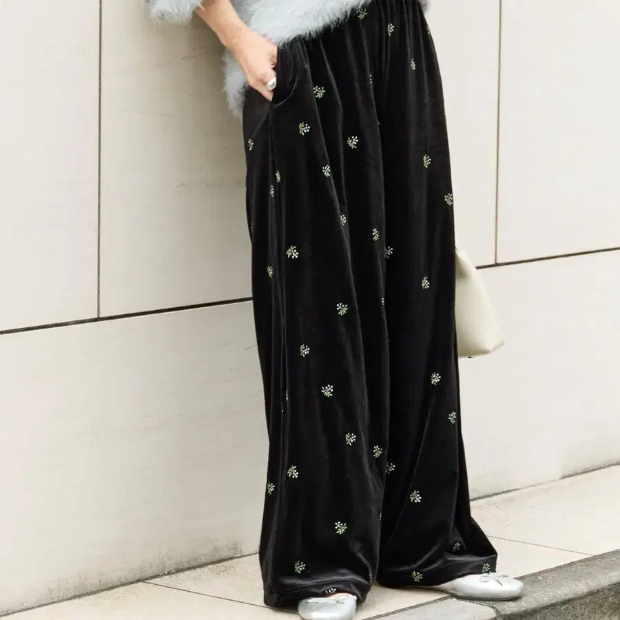 한정판 전개 freaks store 벨로아 꽃무늬 자수 이지 팬츠 촉감이 부드럽고 안감 부착 허리밴딩으로 입기 편해요!! 시착만 한 새상품급 ^_^ 정가 5995