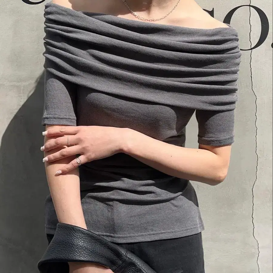 오프숄더 드레이프 디자인이 특징인 그레이 색상의 긴팔 상의. 정가 4,950엔 - 색상: 그레이 - 디자인: 오프숄더, 드레이프 디자인 - 사이즈: F (프리 사이즈) 방문해 주셔서 감사합니다.