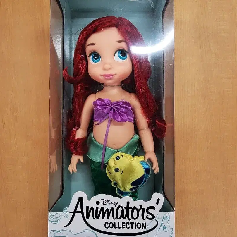 디즈니 애니메이터스 컬렉션 아리엘 인형, 3세 이상 대상. 미사용, 미개봉 상태이나 장기간 방에 장식되어 있어 상자에 노후화가 있습니다. 이해 가능하신 분만 구매 부탁드립니다.