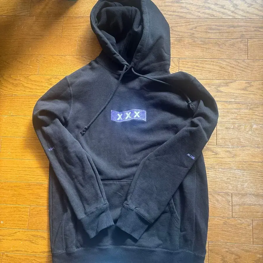 GOD SELECTION XXX 후드티 블랙 M 사이즈 몇 번 착용했습니다. 소매 부분에 올풀림이 있으며, 미세한 사용감은 있습니다.