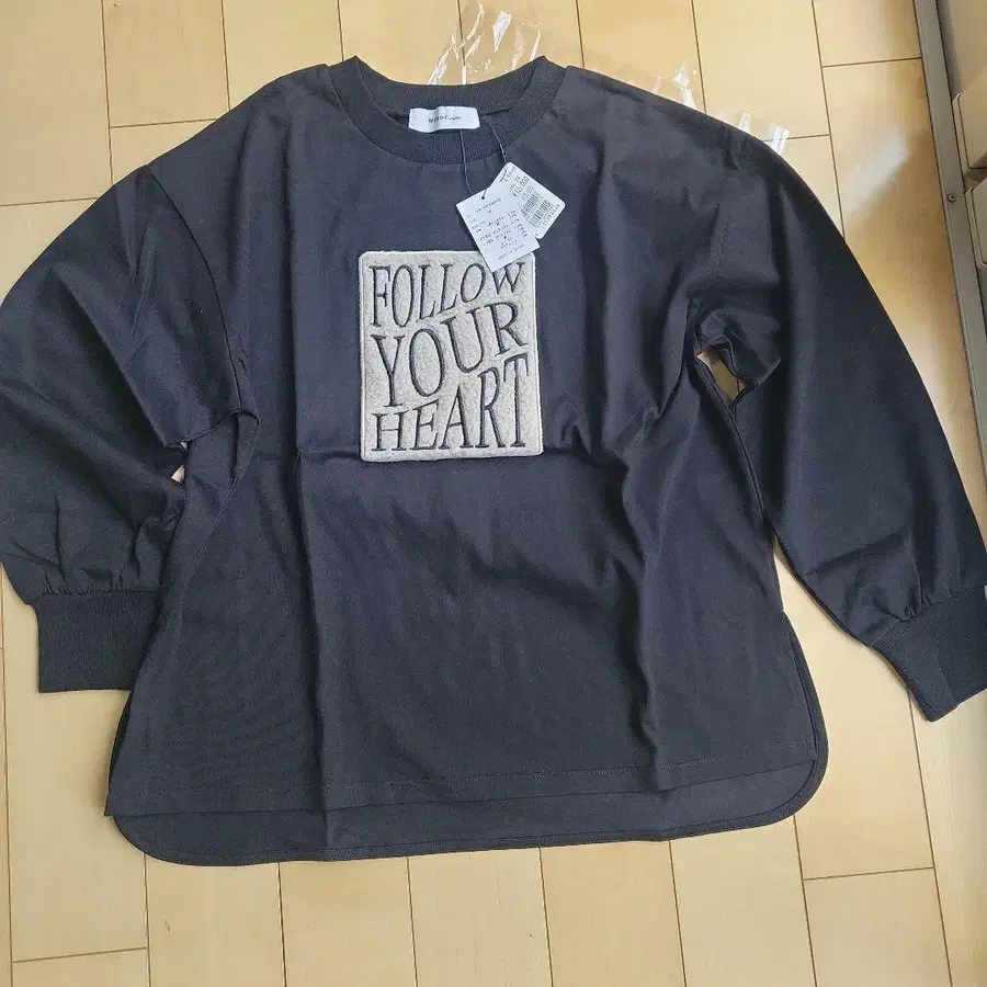 블랙 긴팔 T셔츠, 프론트에 'FOLLOW YOUR HEART' 자수 포함. 미사용이지만, 집에서 보관했던 제품이므로 '미사용에 가까움'으로 했습니다. 신경 쓰이시는 분은 구매를 삼가해 주시기 바랍니다.