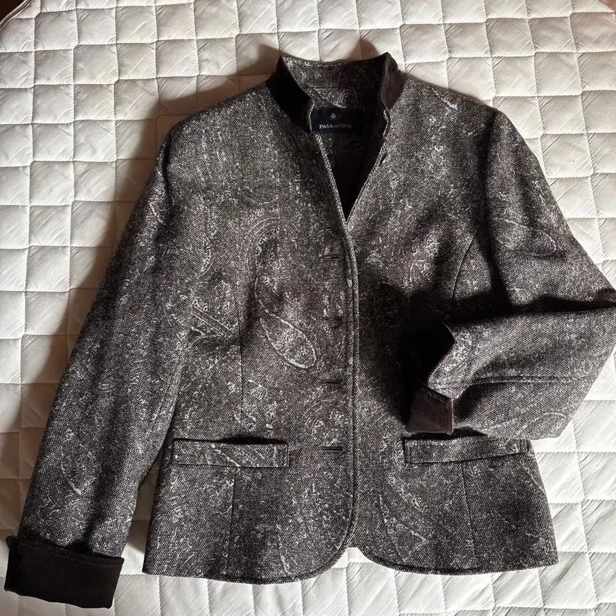 자동 번역되었어요. 원문보기울 혼방 소재의 브라운 x 그레이 테일러드 자켓, 스탠드 카라로도 착용 가능