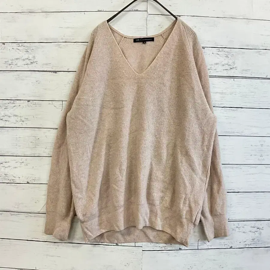 부드럽고 고급스러운 에크루 베이지 계열 컬러로, 깔끔한 스타일부터 성숙 캐주얼까지 폭넓게 대응 가능한 아이템입니다. V넥 디자인이 목선을 깔끔하게 연출하여 스타일업 효과도 기대할 수 있습니다.