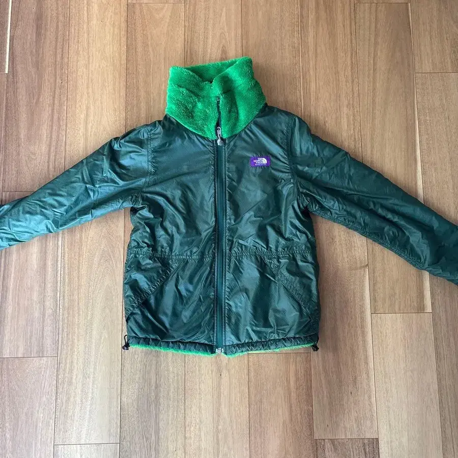 플리스와 나일론의 리버서블 자켓, 그린과 다크 그린의 배색으로 보온성이 뛰어난 디자인입니다.