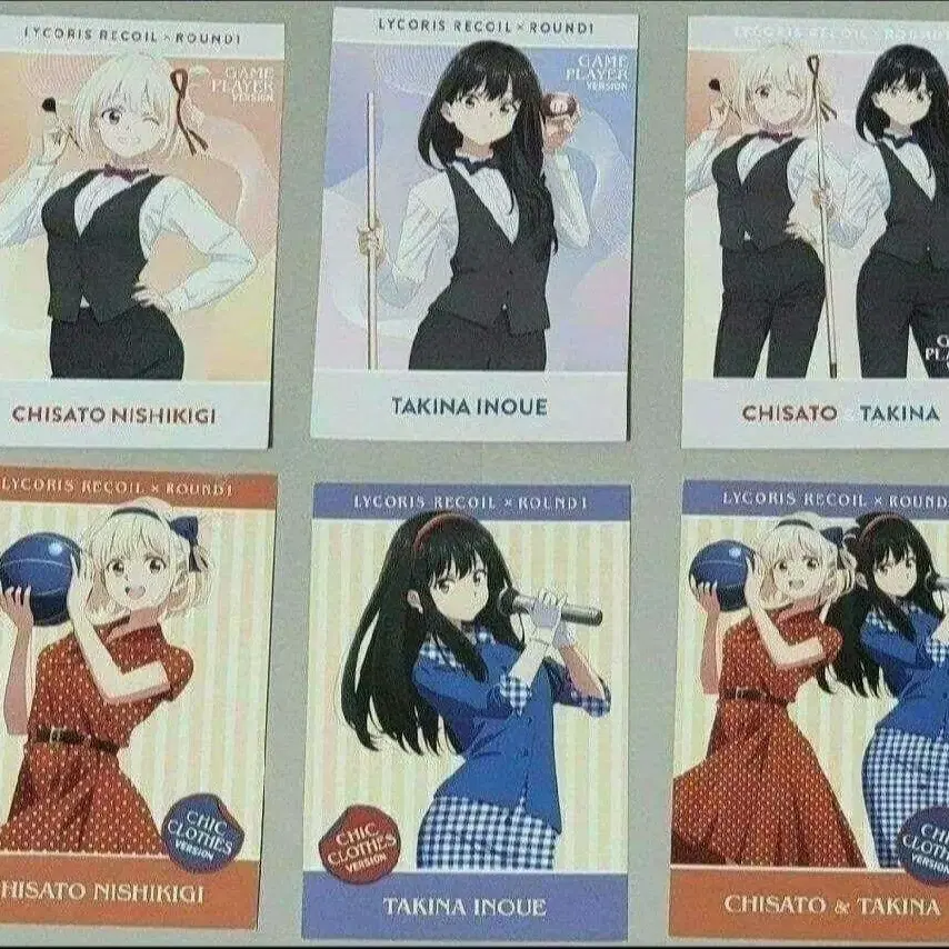엽서 라운드 원 전 6종 타이틀 - 리코리스 리코일 캐릭터명 - 니시키기 치사토 캐릭터명 - 이노우에 타키나