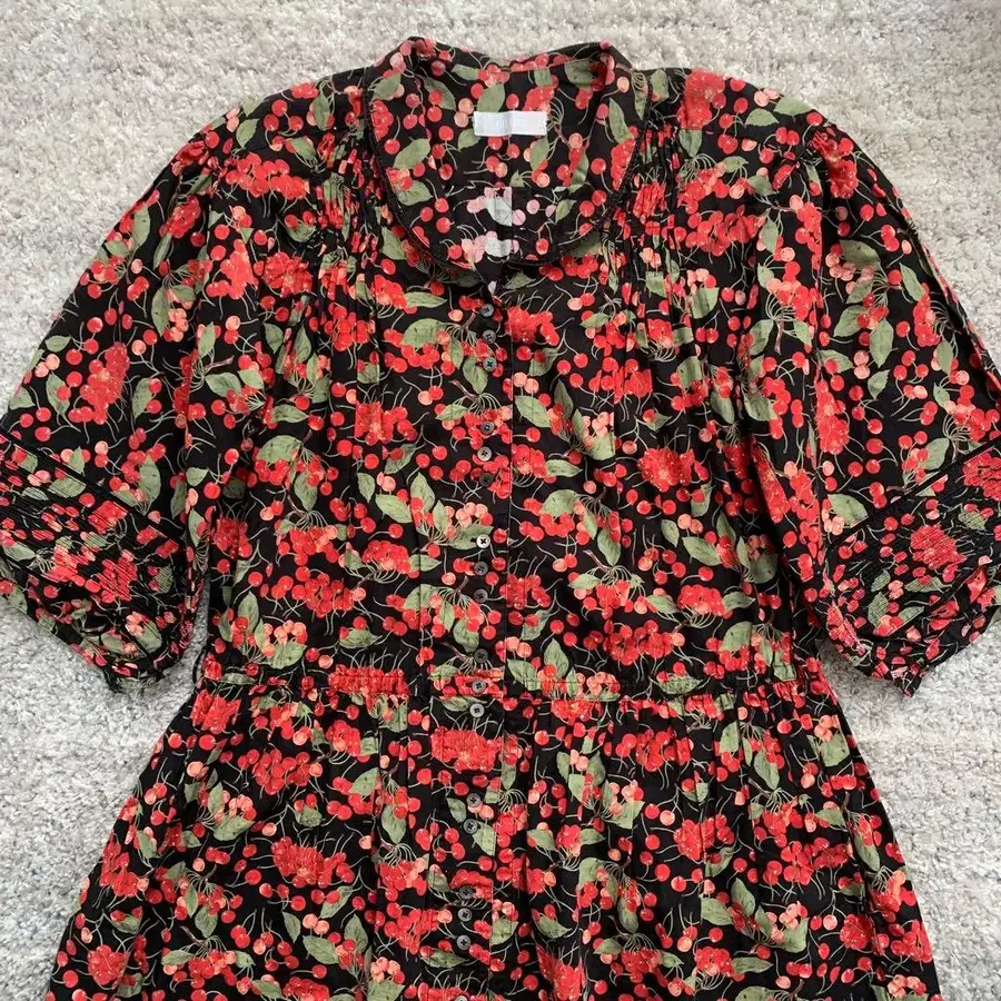 자동 번역되었어요. 원문보기핑크하우스의 체리 패턴 반팔 (5부 소매?) 원피스입니다.