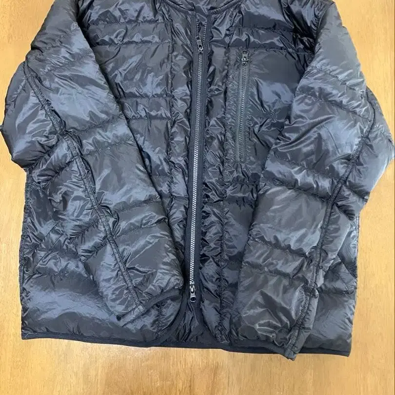 블랙 다운 자켓, THE NORTH FACE 자수 로고 포함, 퀼팅 디자인으로 보온성이 뛰어납니다.