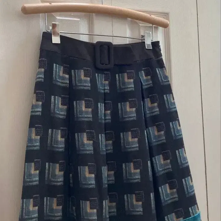 자동 번역되었어요. 원문보기다크 컬러 플레어 스커트, 허리에 버클 포함.
