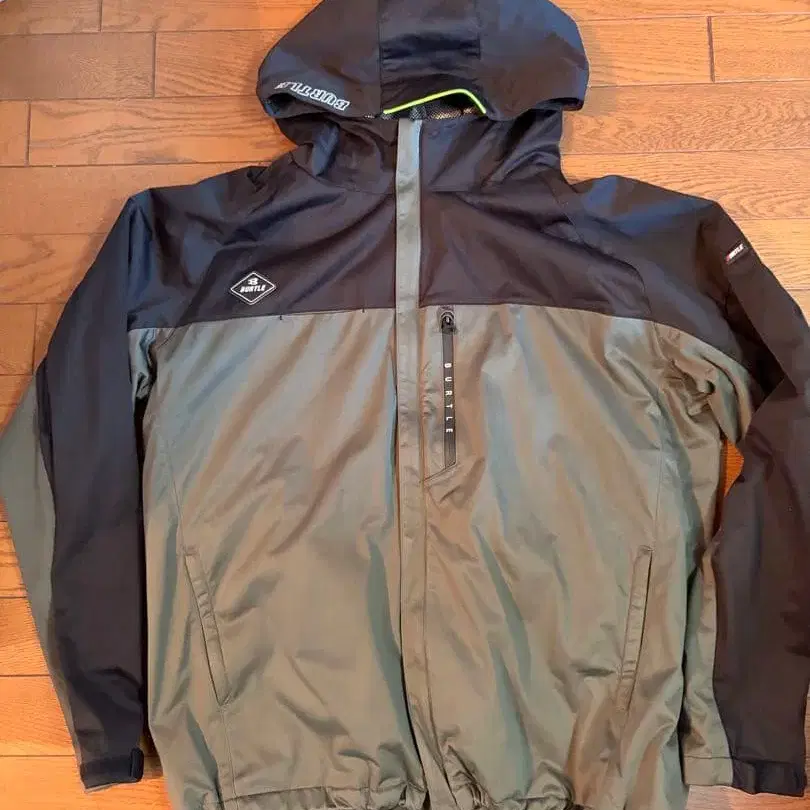 후드 부착 나일론 자켓, 올리브 그린과 블랙의 배색으로, 지퍼 부착. 바틀 - 브랜드: BURTLE - 색상: 올리브 그린/블랙 - 특징: 후드 부착, 지퍼식 - 로고: BURTLE 로고 - 소재: 나일론 방문해 주셔서 감사합니다. 사이즈 - XL(LL) 마운틴 후드티 토라 이치 아이즈