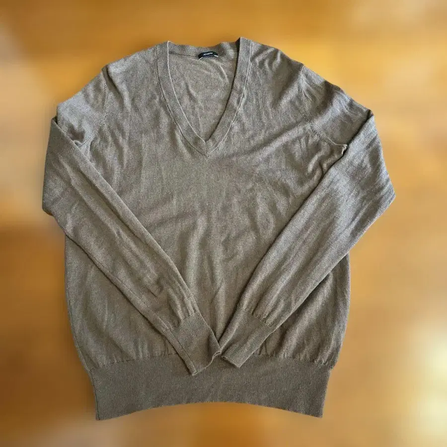 새상품급 조셉 캐시미어 100% V넥 리브 니트 로고 카멜 브라운 M