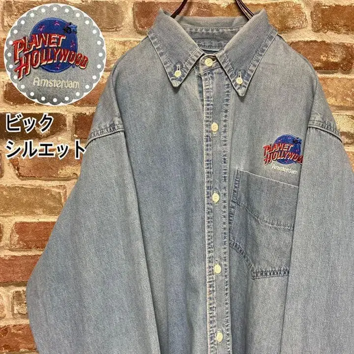 [초레어] 플래닛 할리우드 자수 로고 데님 셔츠 빅 실루엣 XL