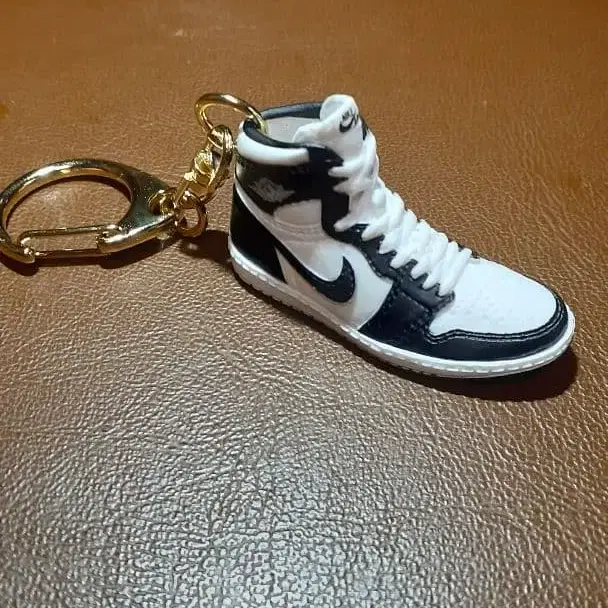 85 high 미니어처 키링 오른쪽과 왼쪽이 있으므로 페어로도 사용 가능합니다. (좌우 1개씩 판매) - 모델: 스니커즈형 키링 오른쪽 - 색상: 화이트/블랙 팬더 - 사이즈: 약 6cm 사용하는 부품은 모두 새 상품을 사용하고 있지만, 핸드메이드라는 점을 이해하신 후 구매해 주세요.